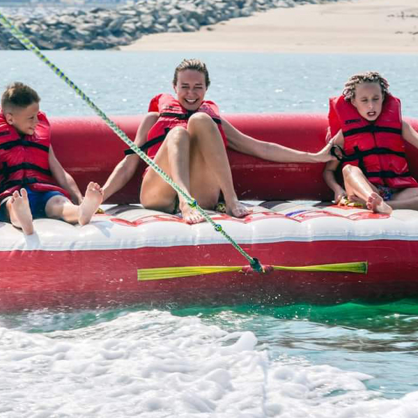 This next generation, Mable for 2 to 4 riders has a high backrest and air cushioned side walls to keep you on board around every whip and turn. Dual Tow Points allow for two completely different riding experiences. Sit, lay, stand or kneel while towing forwards like a deck tube or backwards like a chariot. Tons of Double Webbing Foam Handles with Knuckle Guards and EVA Foam Seating Pads pro The summer vide a comfortable ride that will keep you coming back for more. Sports stuff’s patented the summer Speed Safety Valve and Kwik Tow point will save you time to keep on the water longer. This uniquely shaped classic towable features a Heavy Gauge PVC Bladder and Double Stitched Full Nylon cover with Custom Graphics. Multi-functional is the Big Mable’s middle name, whether it’s providing a unique towable riding experience or making the perfect lounge at any pool, beach, lake or river!